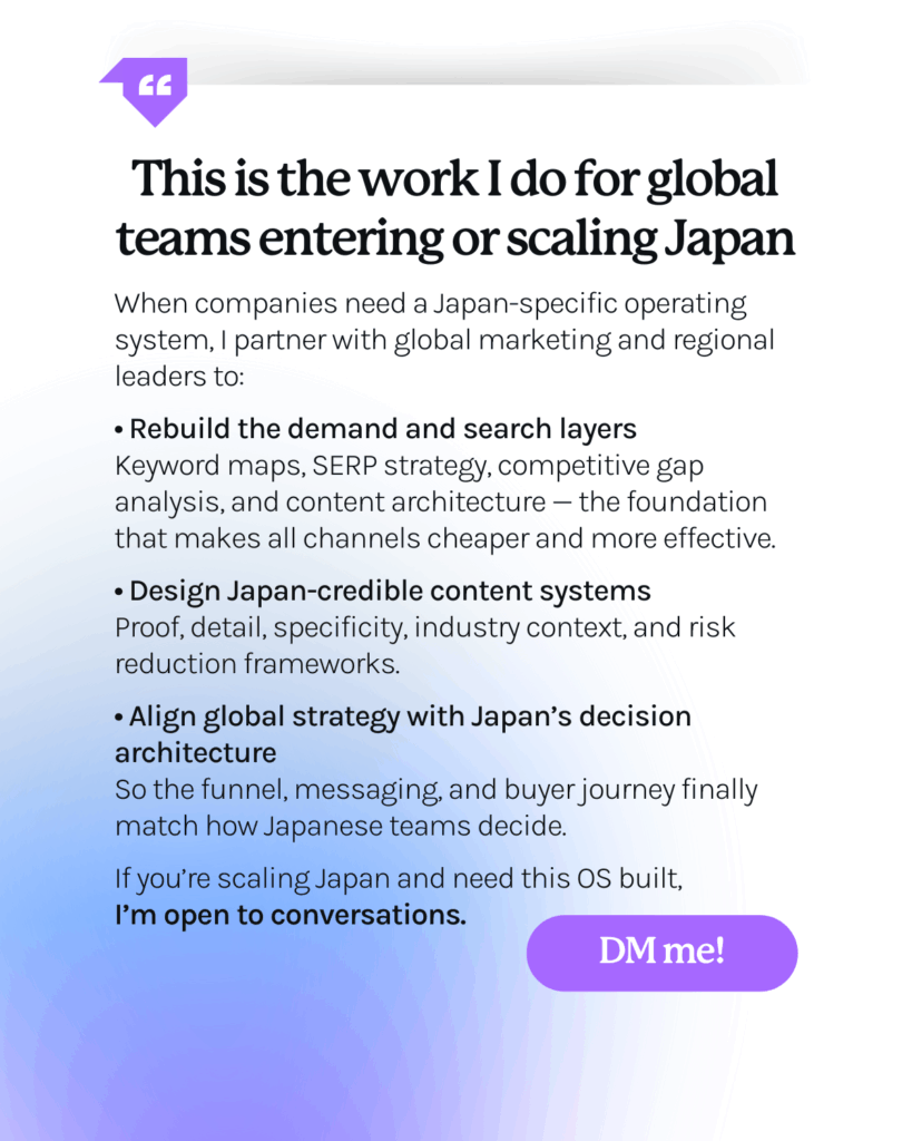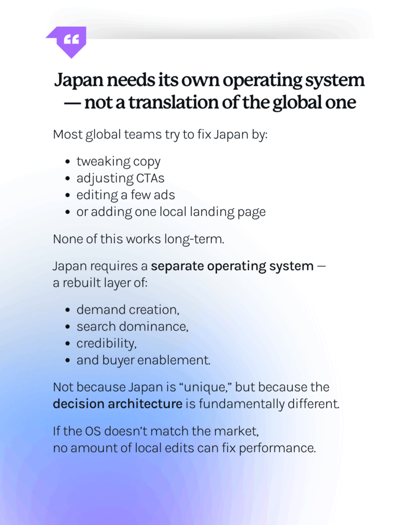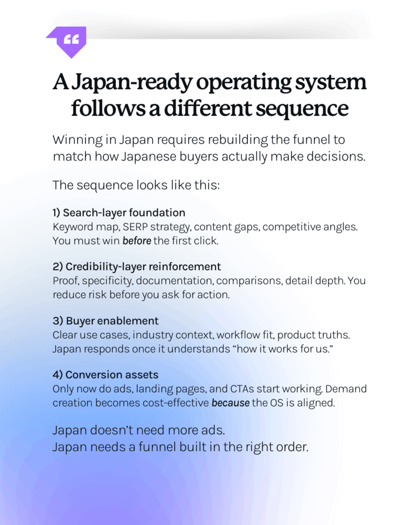 Winning in Japan means rebuilding the funnel to match how Japanese buyers actually decide.