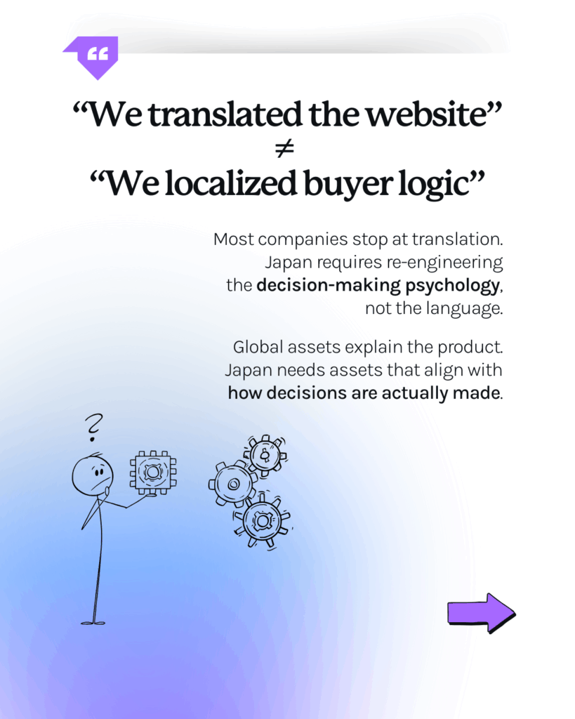 But Japanese buyers don’t respond to language — they respond to risk reduction.